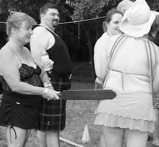 The early afternoon torrential rain dampened the water play and oil wrestling. Dinner break BBQ plate was served to guests. Afterwards, came the first wet-n-wild wedding with the sissy bride ushered out like a roasted animal and everyone gave the new bride her spanking. Guests played both indoors and outdoors with multiple scenes including earth play, fire play, violet wand, wind play, naked yard games, spanking booth, sybian and other creative mood guests had in mind.